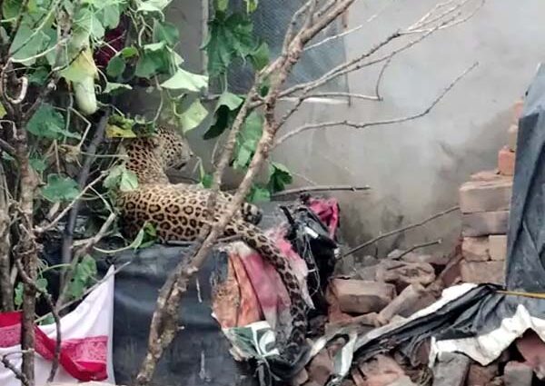 दीवार और जाली के बीच फंसा था तेंदुआ