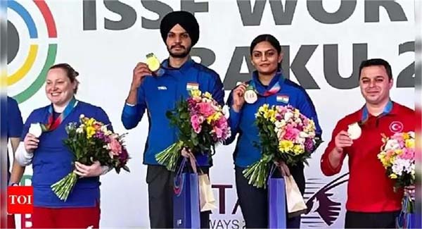 भारतीय निशानेबाज सरबजोत सिंह और दिव्या टीएस ने शनिवार को एशियाई खेल 2023 में 10 मीटर एयर पिस्टल मिश्रित टीम शूटिंग स्पर्धा में रजत पदक जीता। भारतीय जोड़ी स्वर्ण पदक मैच में चीन के बोवेन झांग और रैनक्सिन जियांग से 16-14 से हार गई। सरबजोत सिंह-दिव्या टीएस ने एक समय स्वर्ण पदक प्लेऑफ में 7-3 से बढ़त बना ली थी, लेकिन पुरुषों की व्यक्तिगत स्पर्धा में मौजूदा विश्व चैंपियन झांग बोवेन और टोक्यो 2020 ओलंपिक मिश्रित टीम के स्वर्ण पदक विजेता रैनक्सिन जियांग ने मजबूत वापसी की। चीनी जोड़ी ने पहले स्कोर 7-7 से बराबर किया और फिर दो अंकों से फाइनल जीत लिया। मिश्रित टीम फ़ाइनल में 16 अंक तक पहुँचने वाला पहला पदक जीतता है।