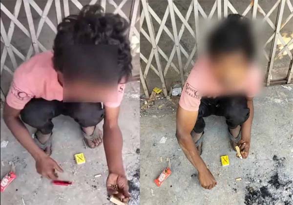 रायपुर। राजधानी में नशे का कारोबार धडल्ले चलने लगा है जिसकी वजह से इस नशे की चपेट में नाबालिग से लेकर युवावर्ग भी नशा करने लगा है। आए दिन पुलिस चेकिंग अभियान चलाती है। जिसमें कई नशे का कारोबार करने वाले तस्करों की गिरफ्तारी भी होती है लेकिन कुछ नशा तस्कर पुलिस से एक कदम आगे चलते है और मौहल्लों की छोटी-छोटी गलियों में नशे बेचने का काम शुरू कर दिया है। ऐसा ही एक मामला करबला पारा इलाके का सामने आया है जिसमें एक नाबालिग बच्चे के हाथ में गांजा दिखा जो इस गांजे को गोगो में डालकर पीने के लिए माचिस जला रहा था। तभी एक युवक ने नाबालिग के इस करतूत को अपने कैमरे में कैद कर लिया। सूत्रों के मुताबिक करबला पारा इलाके के पीछे तरफ एक पांच मंजिला निर्माणाधीन खंडहर है जिसमें कोटा के गांजा किंग आशु सोनी के गुर्गों ने अपना ठीहा बना लिया है। जो करबला पारा इलाके के इस खंडहर के आस-पास में बैठकर गांजा और अवैध शराब का धंधा करते है।