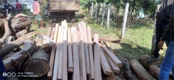 वन अफसर पकड़ा गया, साल की लकड़ी का चिरान जब्त